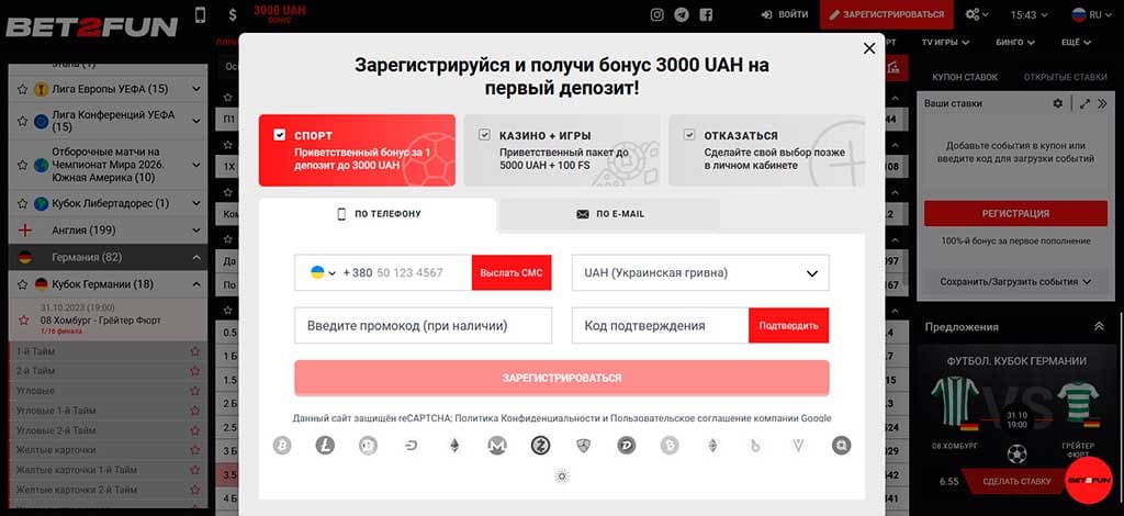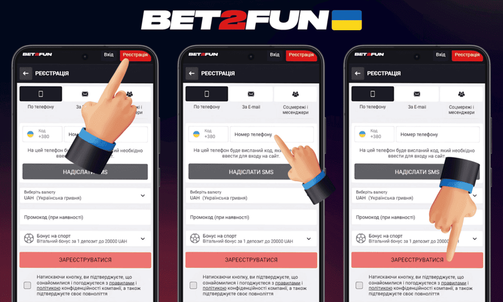 Если у вас еще нет аккаунта на Bet2Fun, зарегистрироваться можно за 2-3 минуты. Платформа предлагает два метода регистрации – по email и по номеру телефона. Оба метода просты и быстры.
